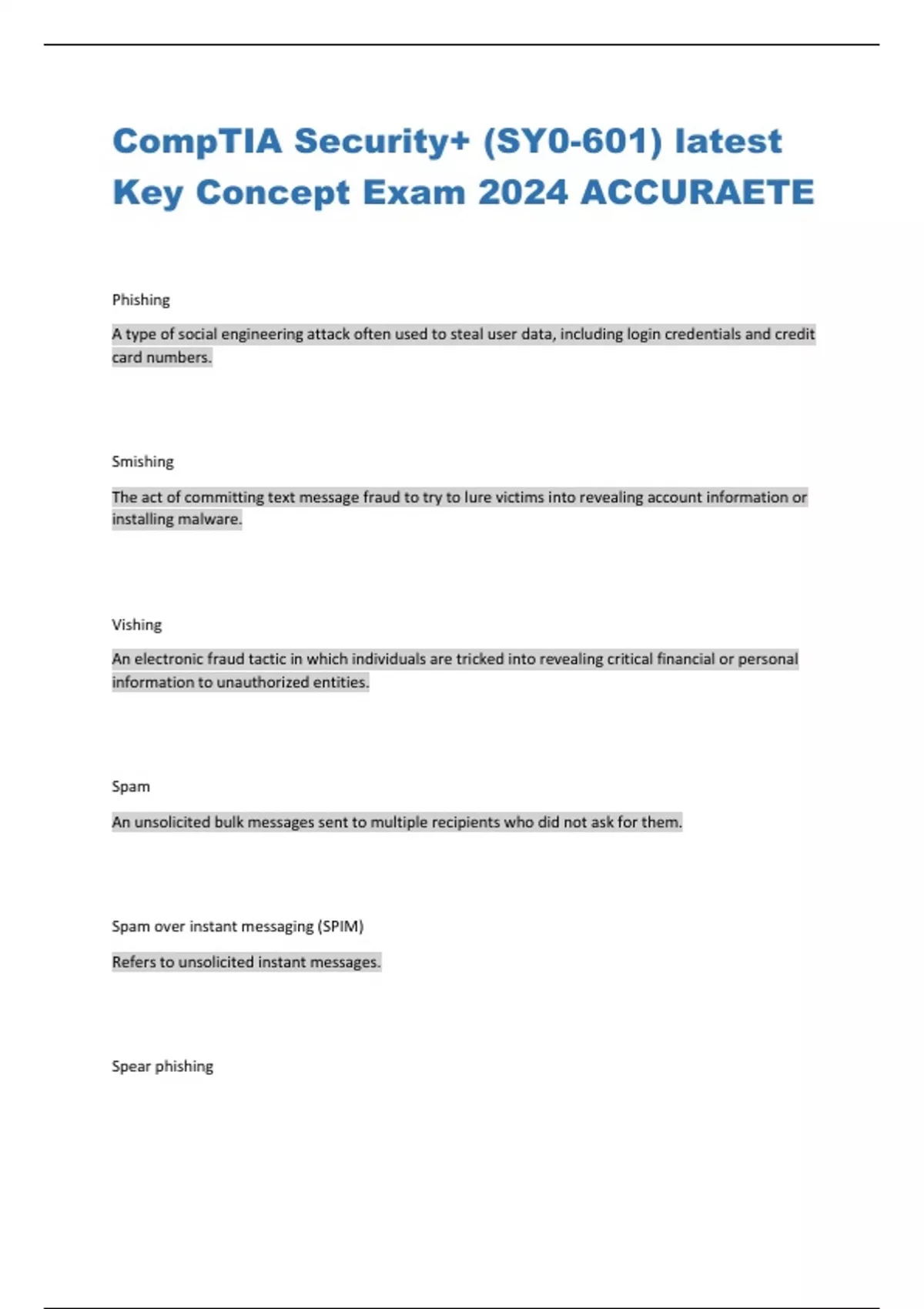 CompTIA Security+ (SY0-601) latest Key Concept Exam 2024 ACCURAETE