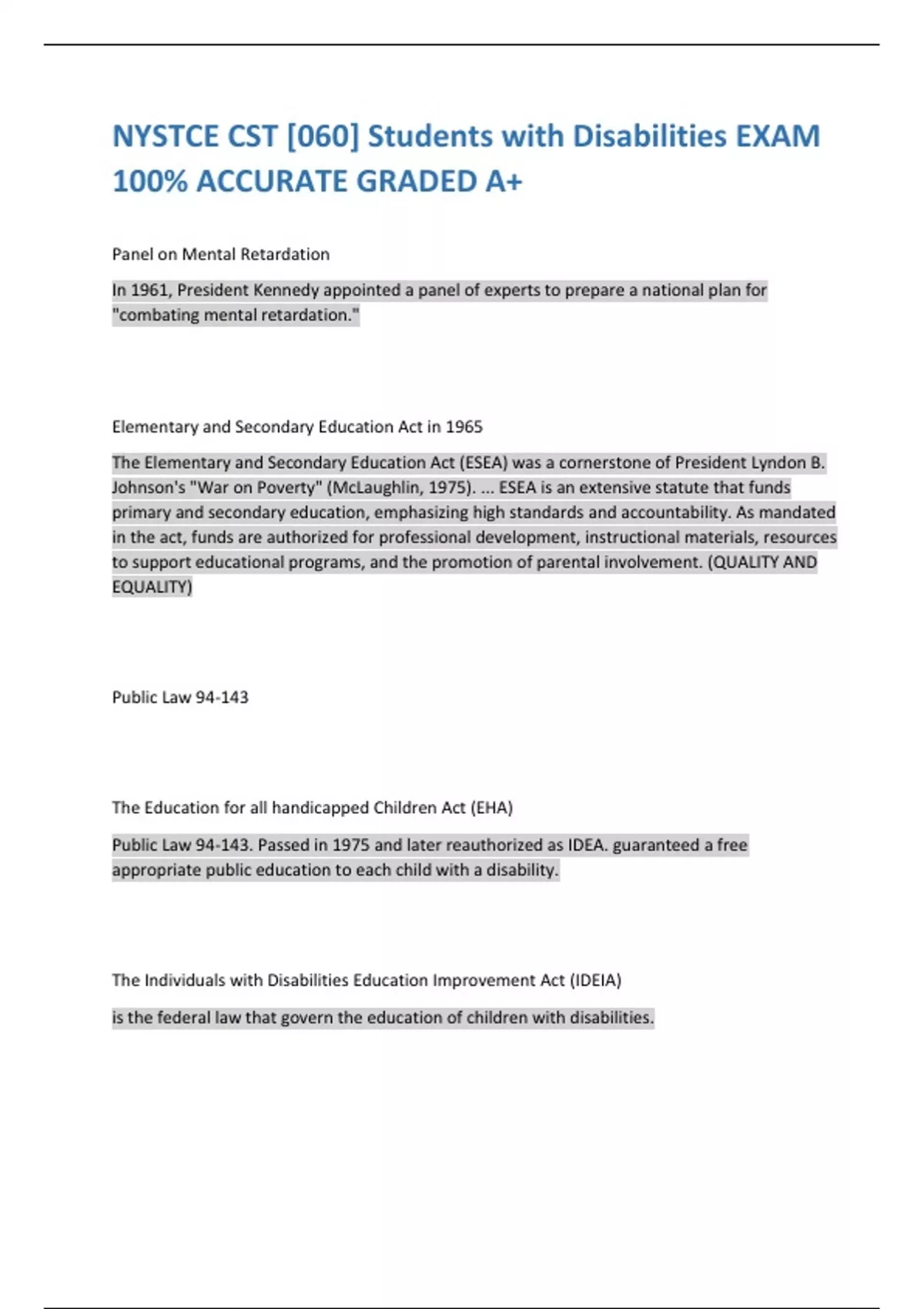 NYSTCE CST [060] Students with Disabilities EXAM 100% ACCURATE GRADED A+