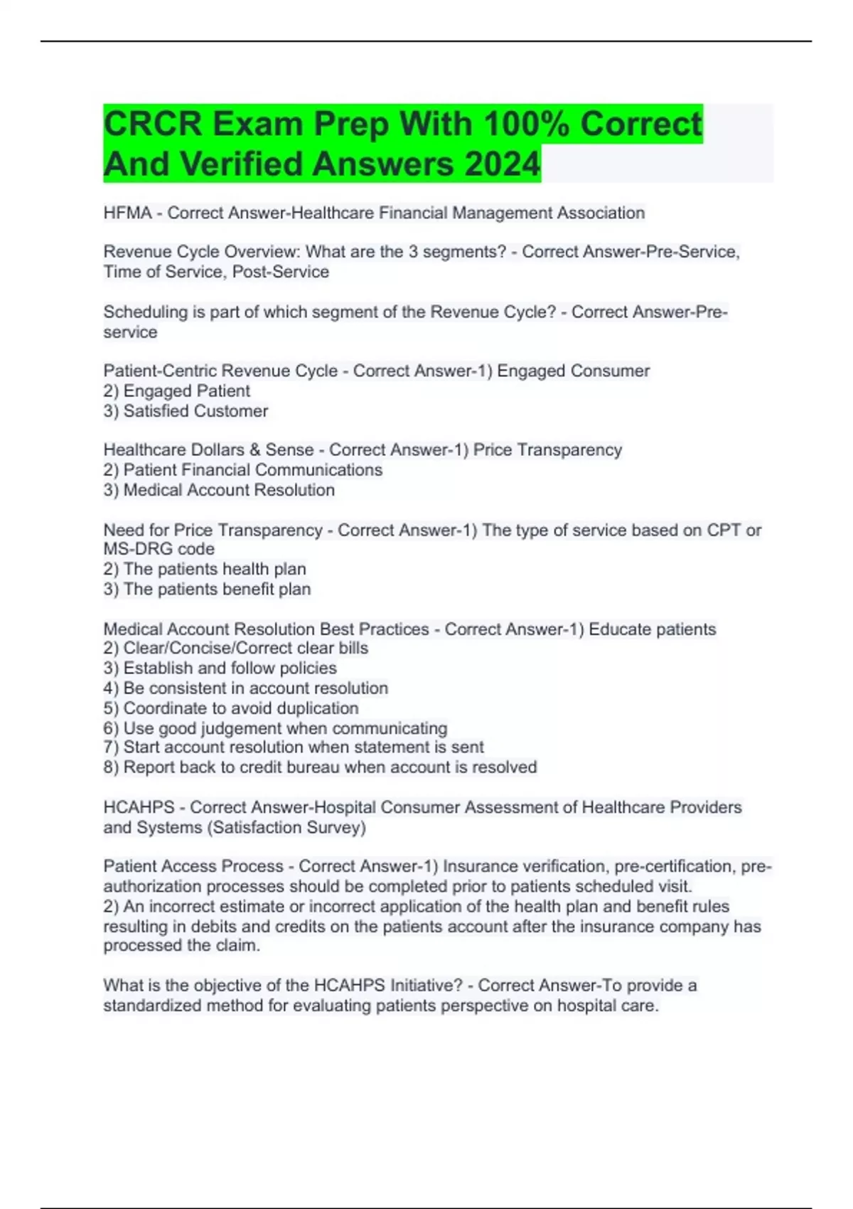 CRCR Exam Prep With 100% Correct And Verified Answers 2024