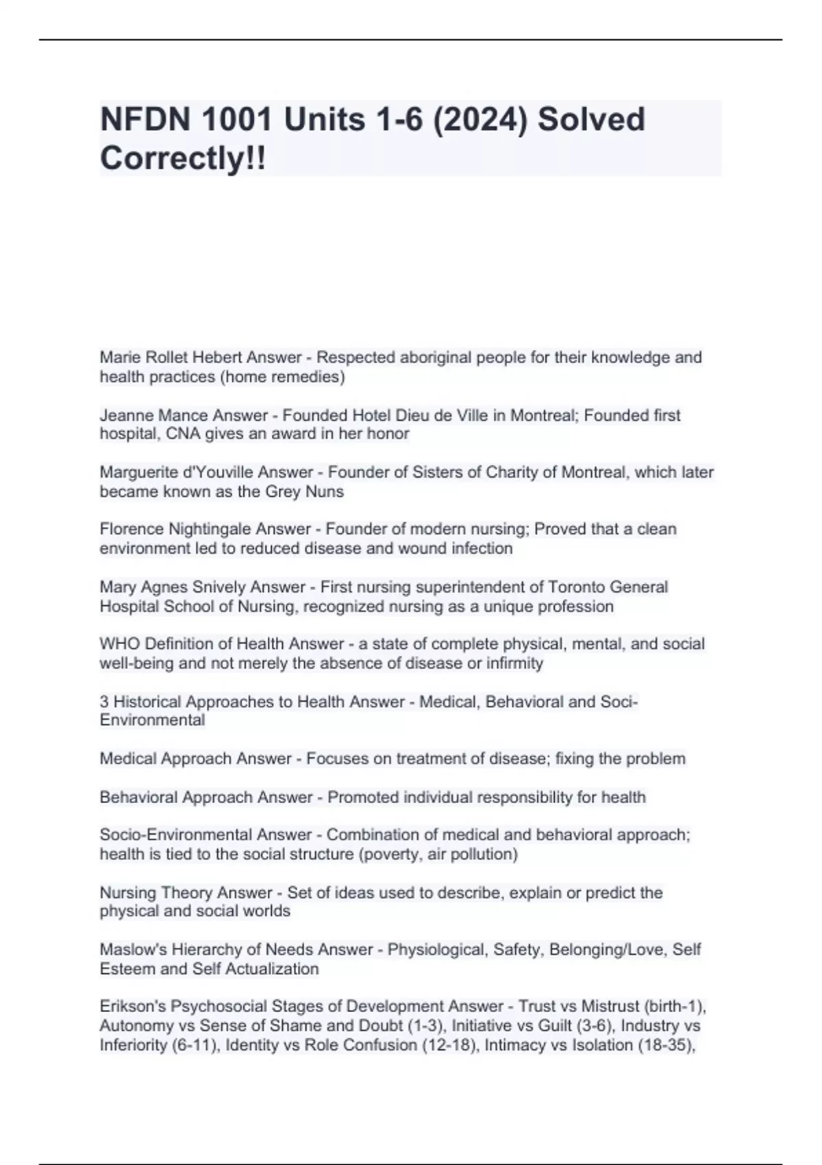 NFDN 1001 Units 1-6 (2024) Solved Correctly!!