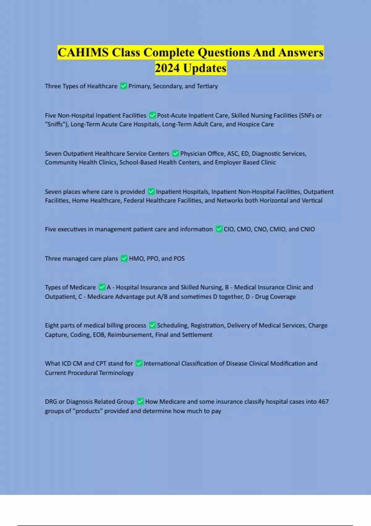 CAHIMS Class Complete Questions And Answers 2024 Updates CAHIMS Class Complete Questions And Answers 2024 Updates