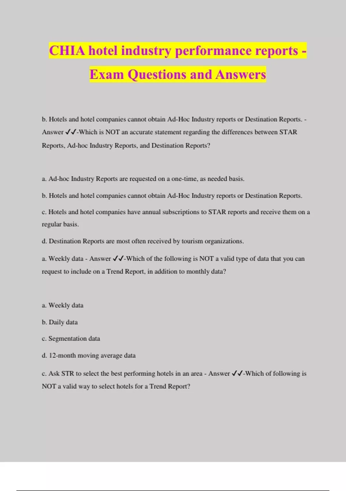 CHIA hotel industry performance reports - Exam Questions and Answers