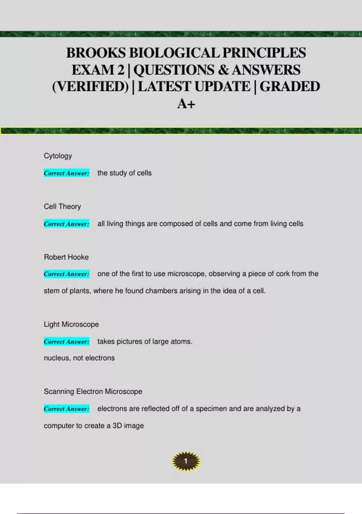 BROOKS BIOLOGICAL PRINCIPLES EXAM 2 | QUESTIONS & ANSWERS (VERIFIED) | LATEST UPDATE | GRADED A+
