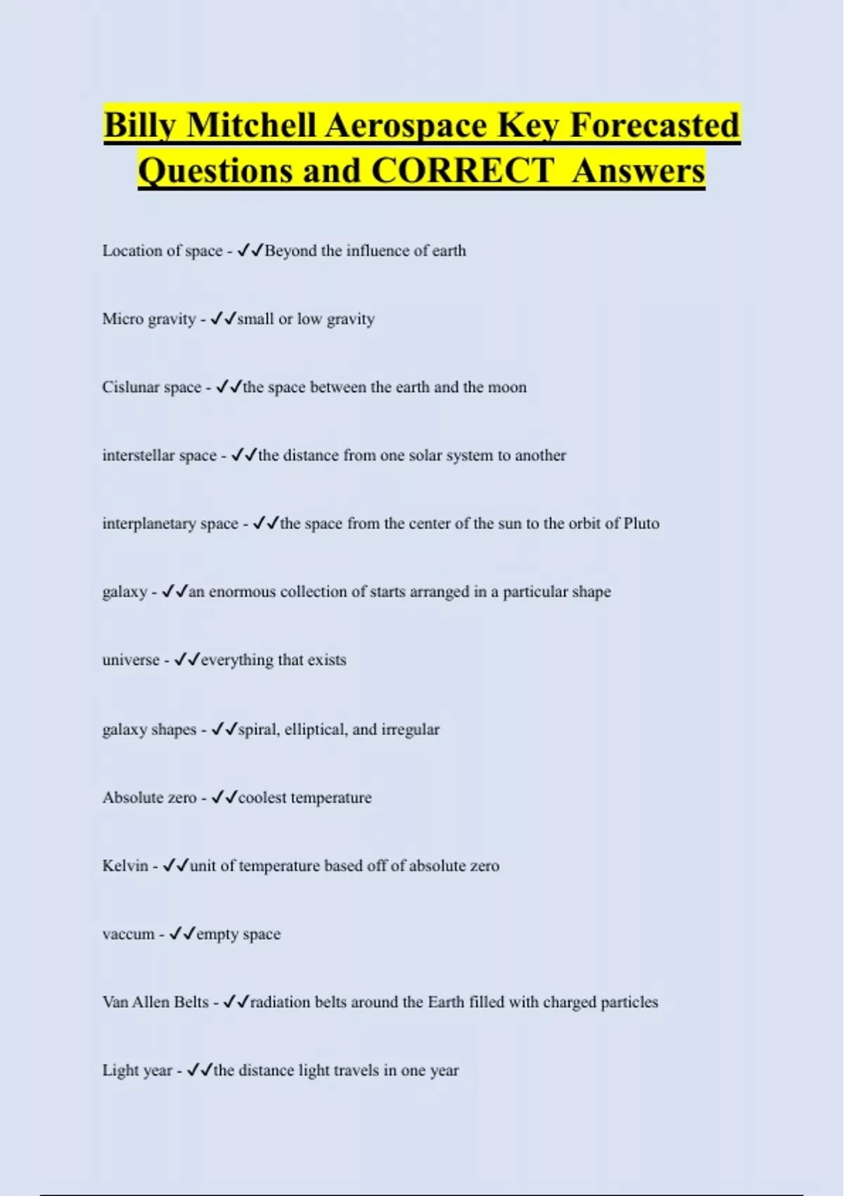Billy Mitchell Aerospace Key Forecasted Questions and CORRECT Answers
