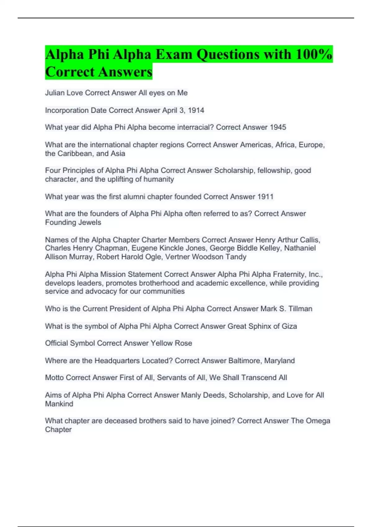 Alpha Phi Alpha Exam Questions with 100% Correct Answers
