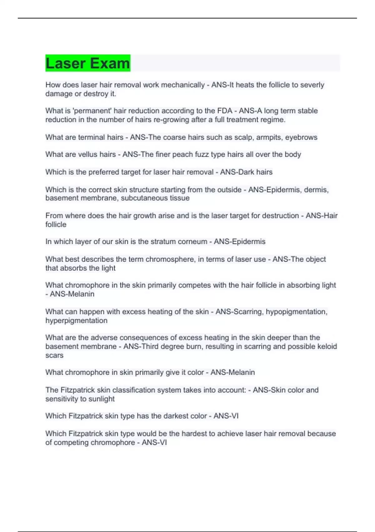 Exam of 5 pages for the course Laser Hair Removal at Laser Hair Removal (Laser Exam)