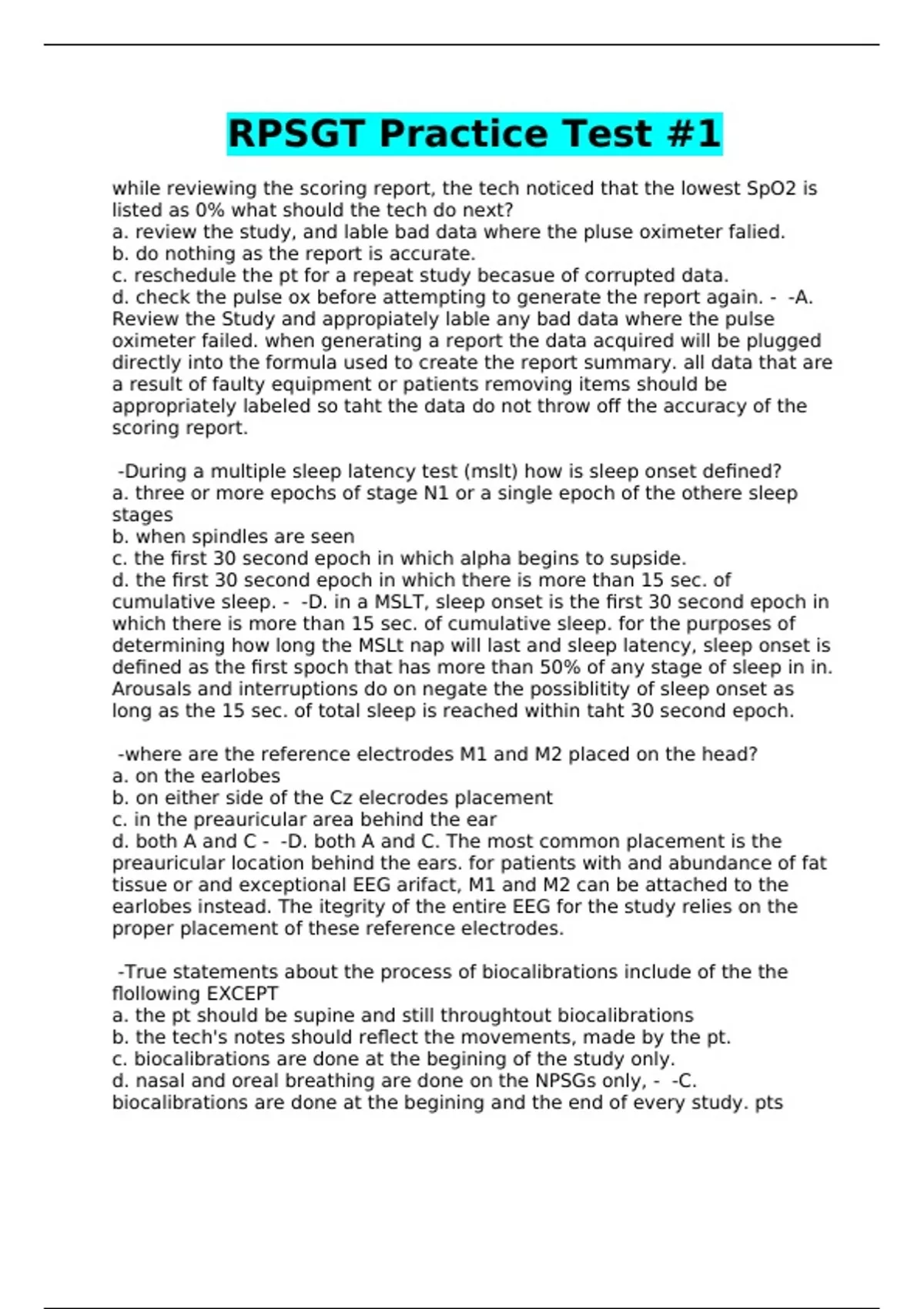 RPSGT Practice Test #1