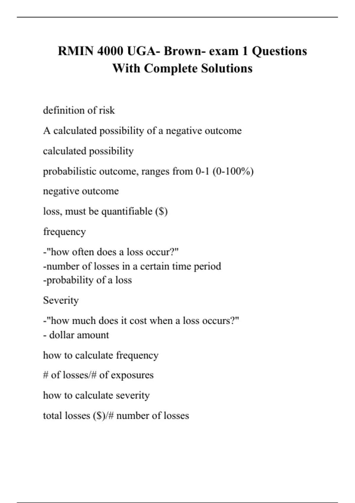 RMIN 4000 UGA- Brown- exam 1 Questions With Complete Solutions