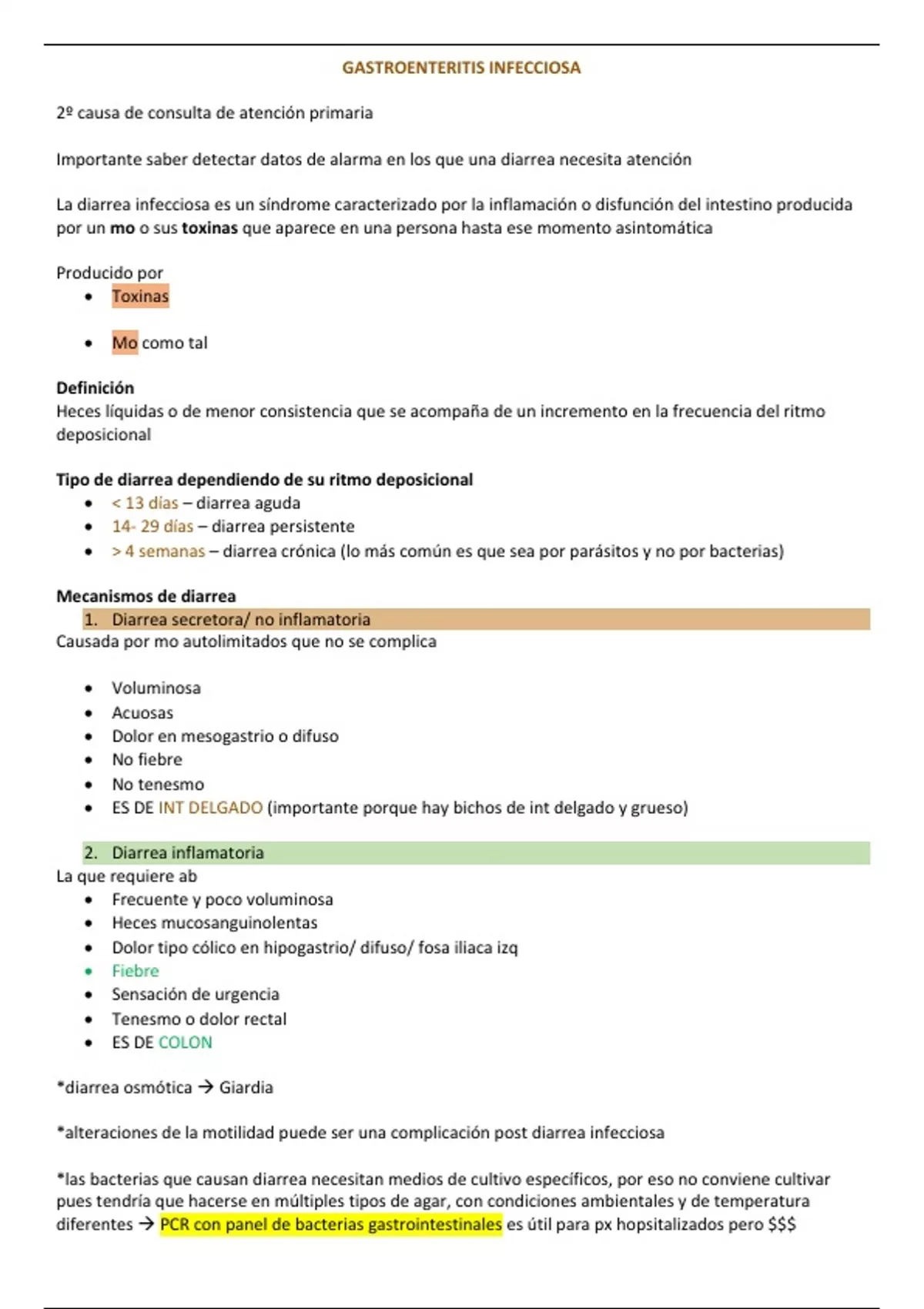 MO diarrea infecciosa inflamatoria