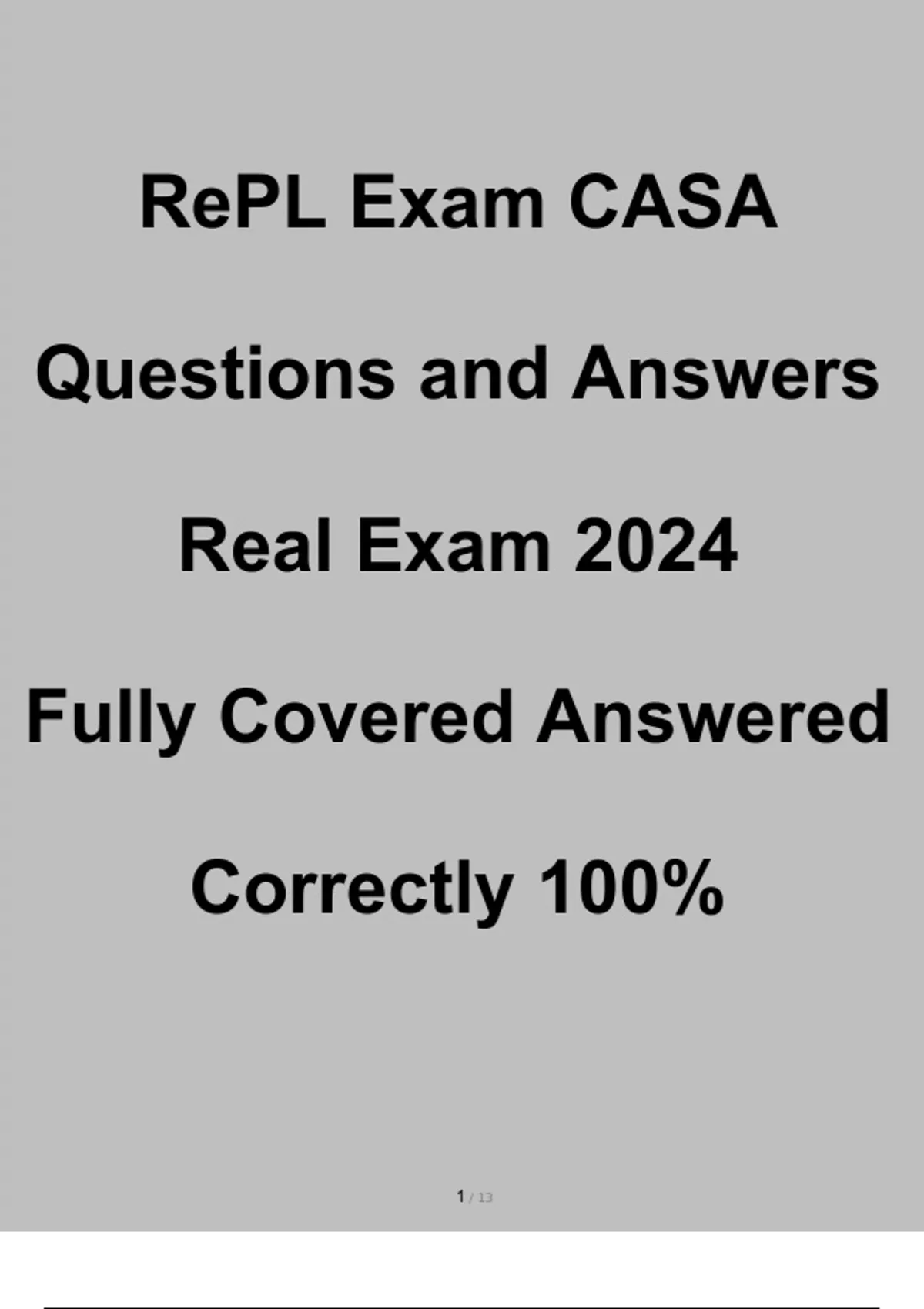 RePL Exam CASA Questions and Answers Real Exam 2024 Fully Covered Answered Correctly 100%