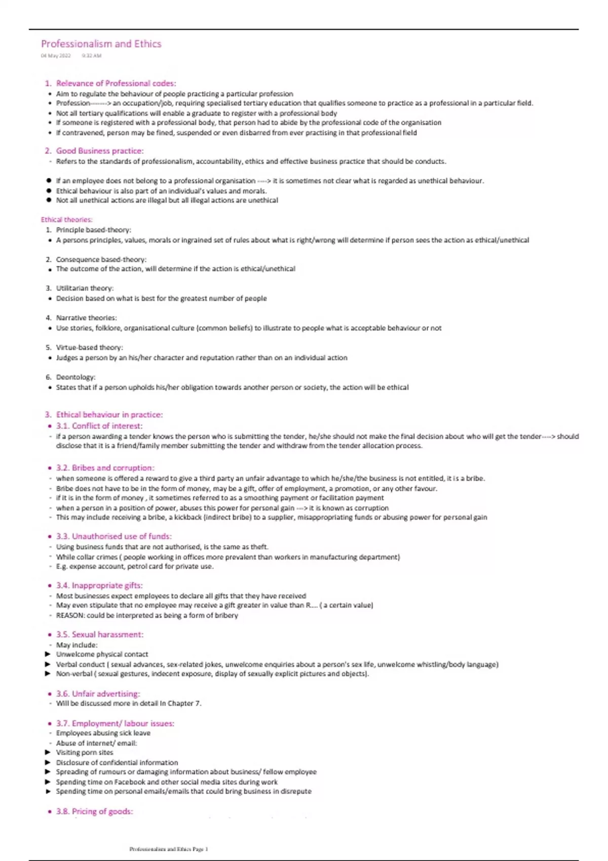 Professionalism and Ethics Page 1
