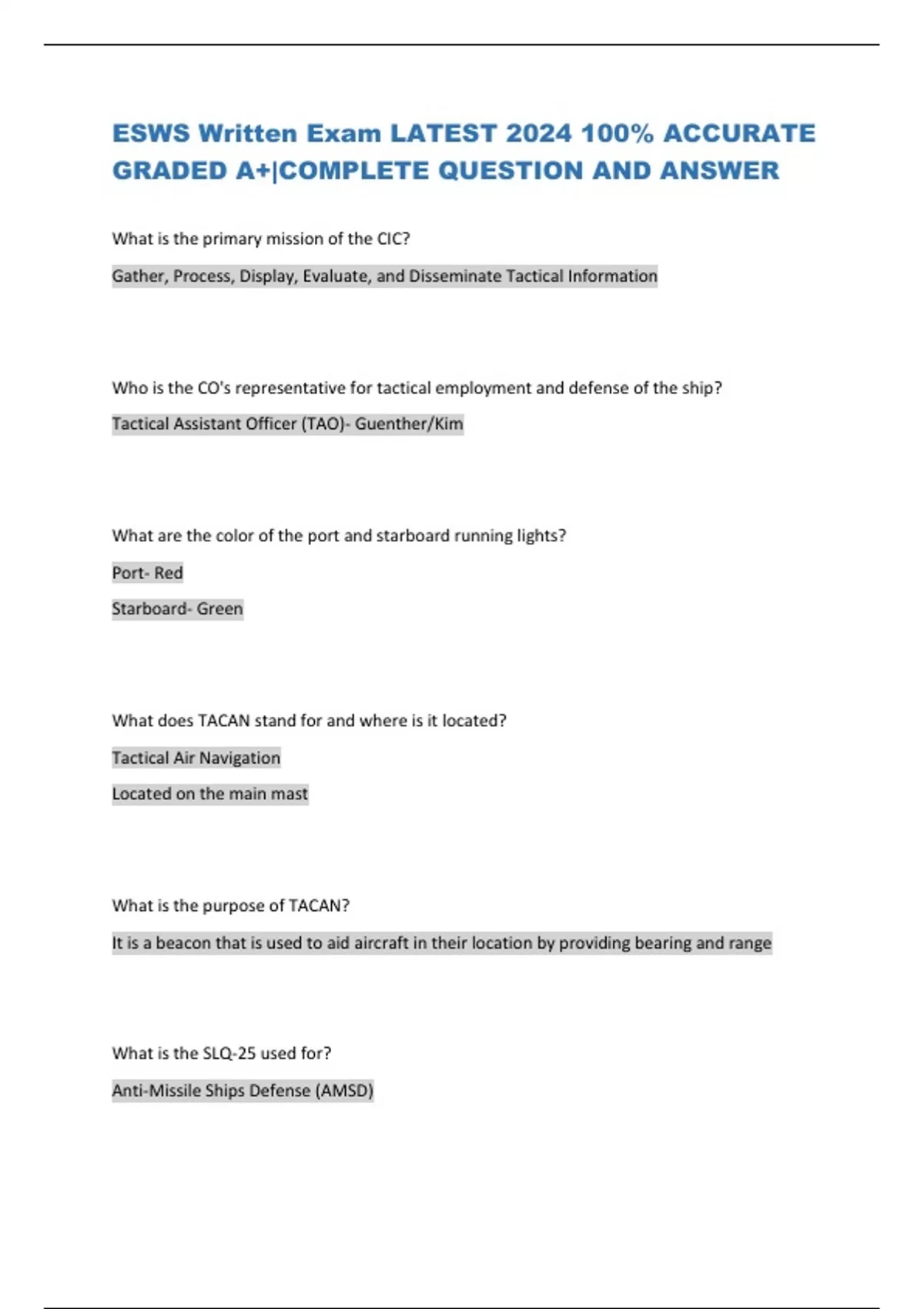 ESWS Written Exam LATEST 2024 100% ACCURATE GRADED A+|COMPLETE QUESTION AND ANSWER