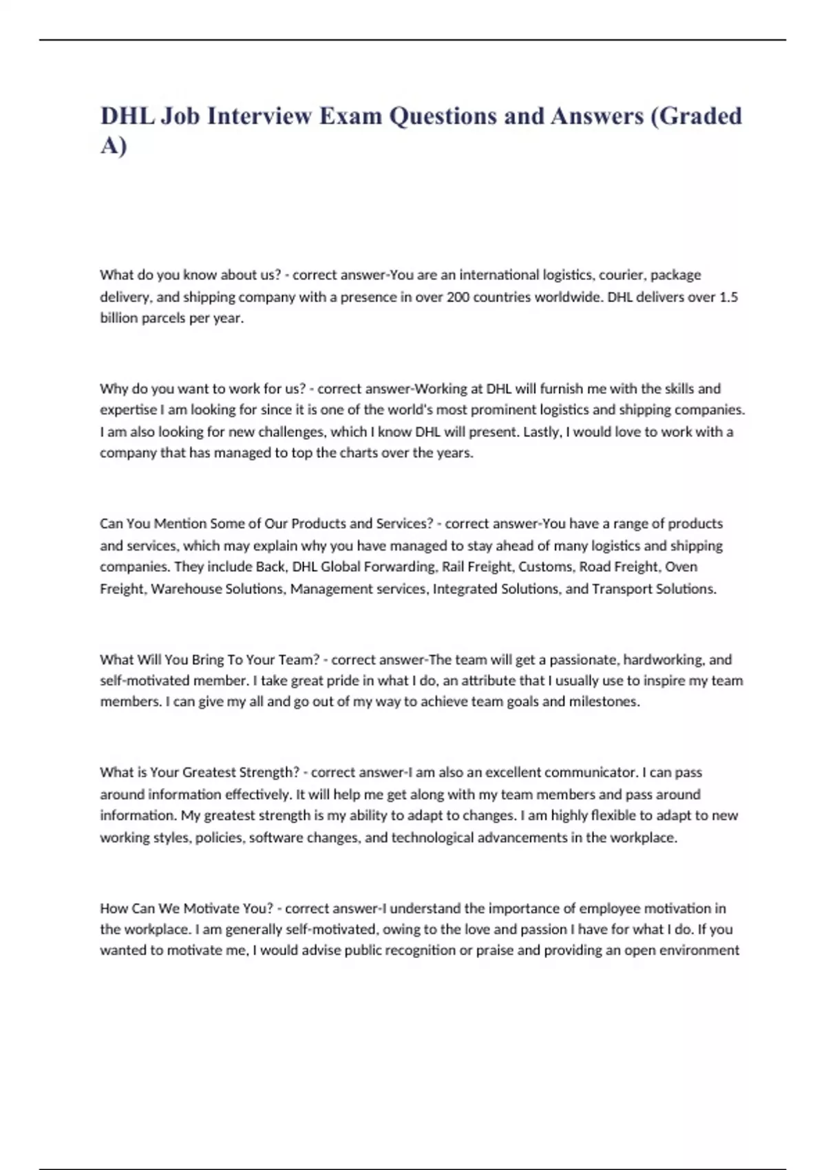 DHL Job Interview Exam Questions and Answers (Graded A)