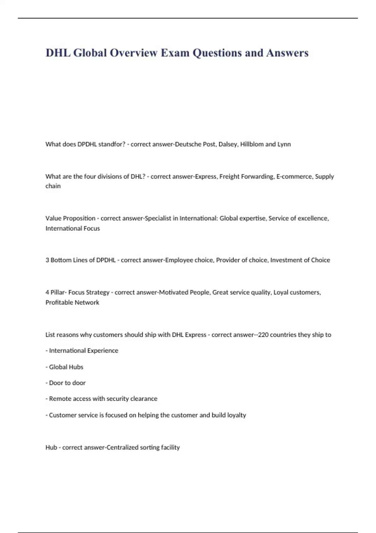 DHL Global Overview Exam Questions and Answers