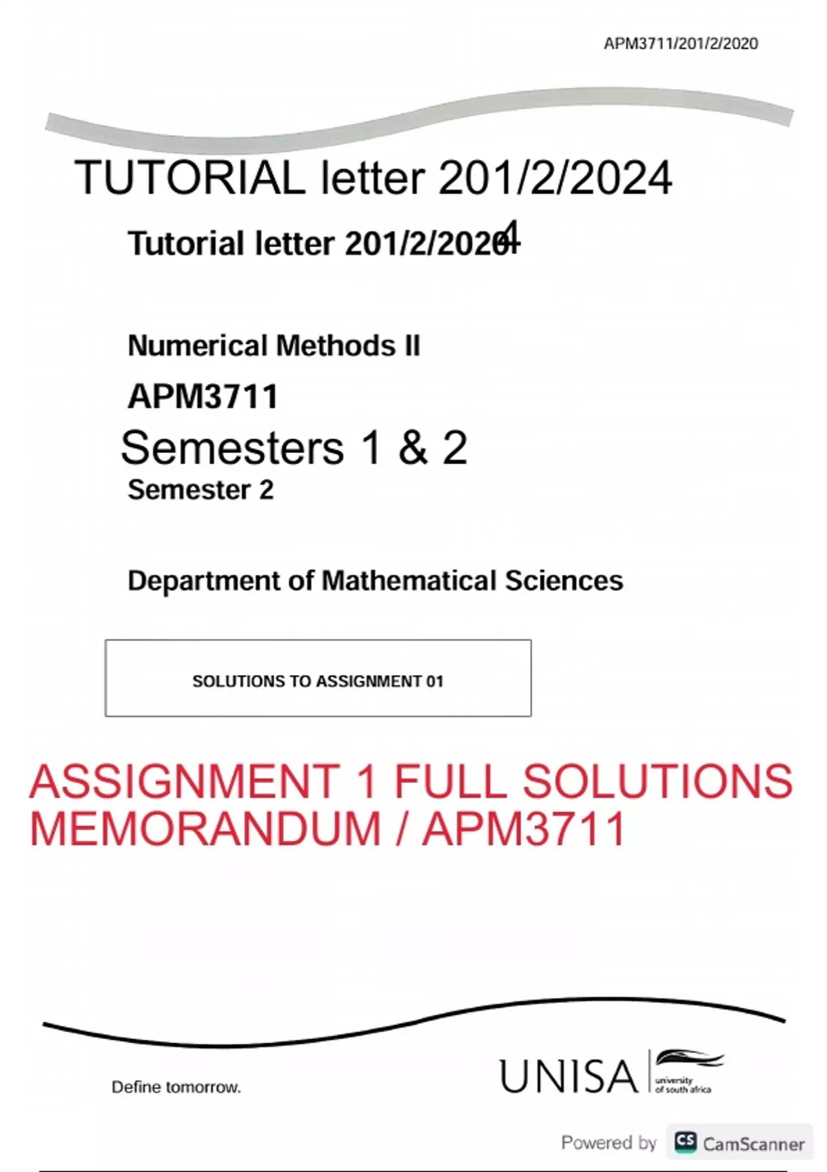 APM3711 ASSIGNMENT 1 FULL SOLUTIONS 2024 UNISA NUMERICAL METHODS