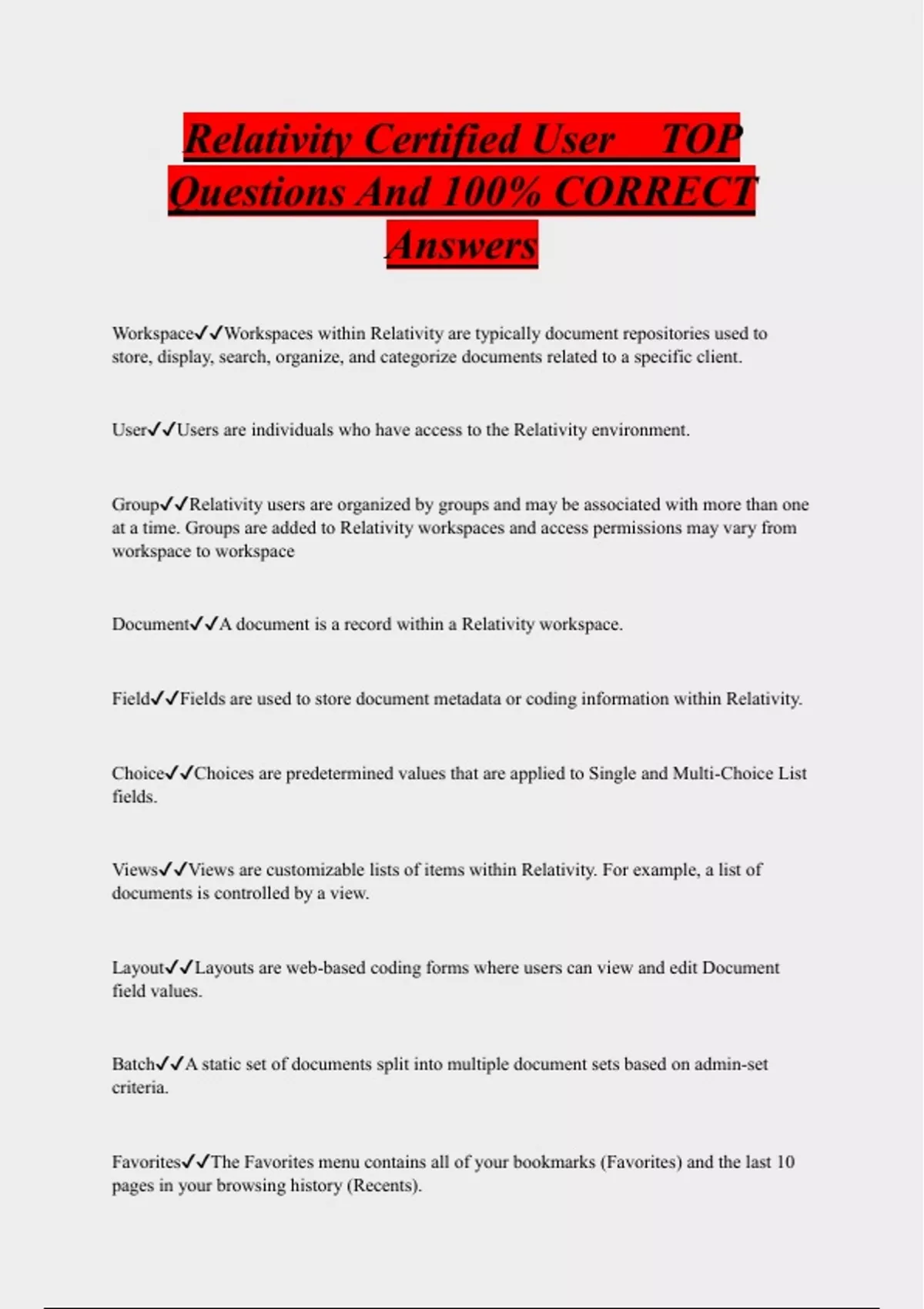 Relativity Certified User TOP Questions And 100% CORRECT Answers