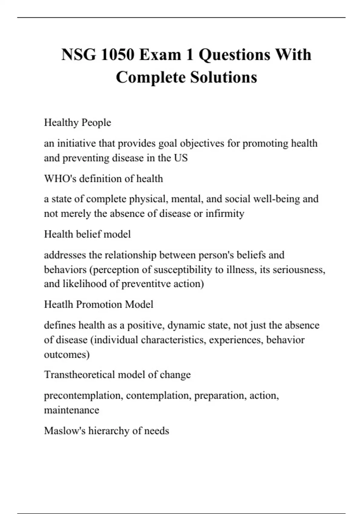 nsg 1050 exam 1 questions with complete solutions