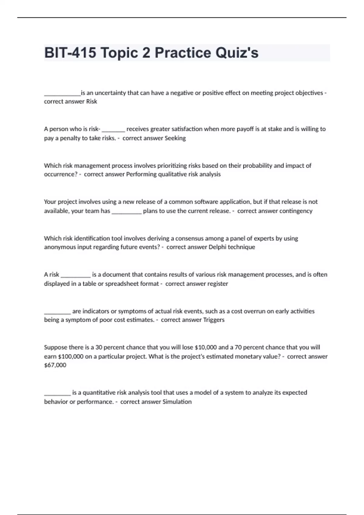 BIT-415 Topic 2 Practice Quiz's questions and answers certified 2024