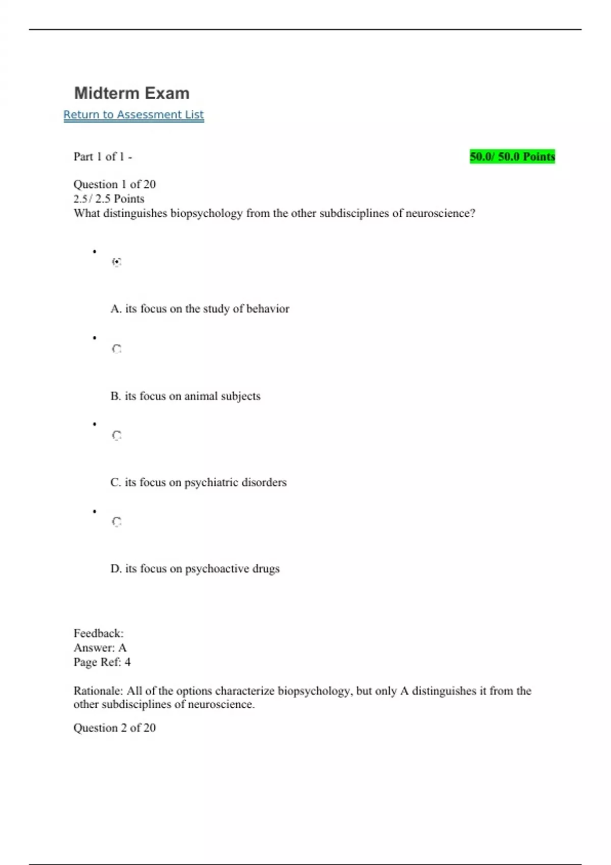PSYC325 Week 4 Midterm Exam (Multiple Choice Questions-Answers)