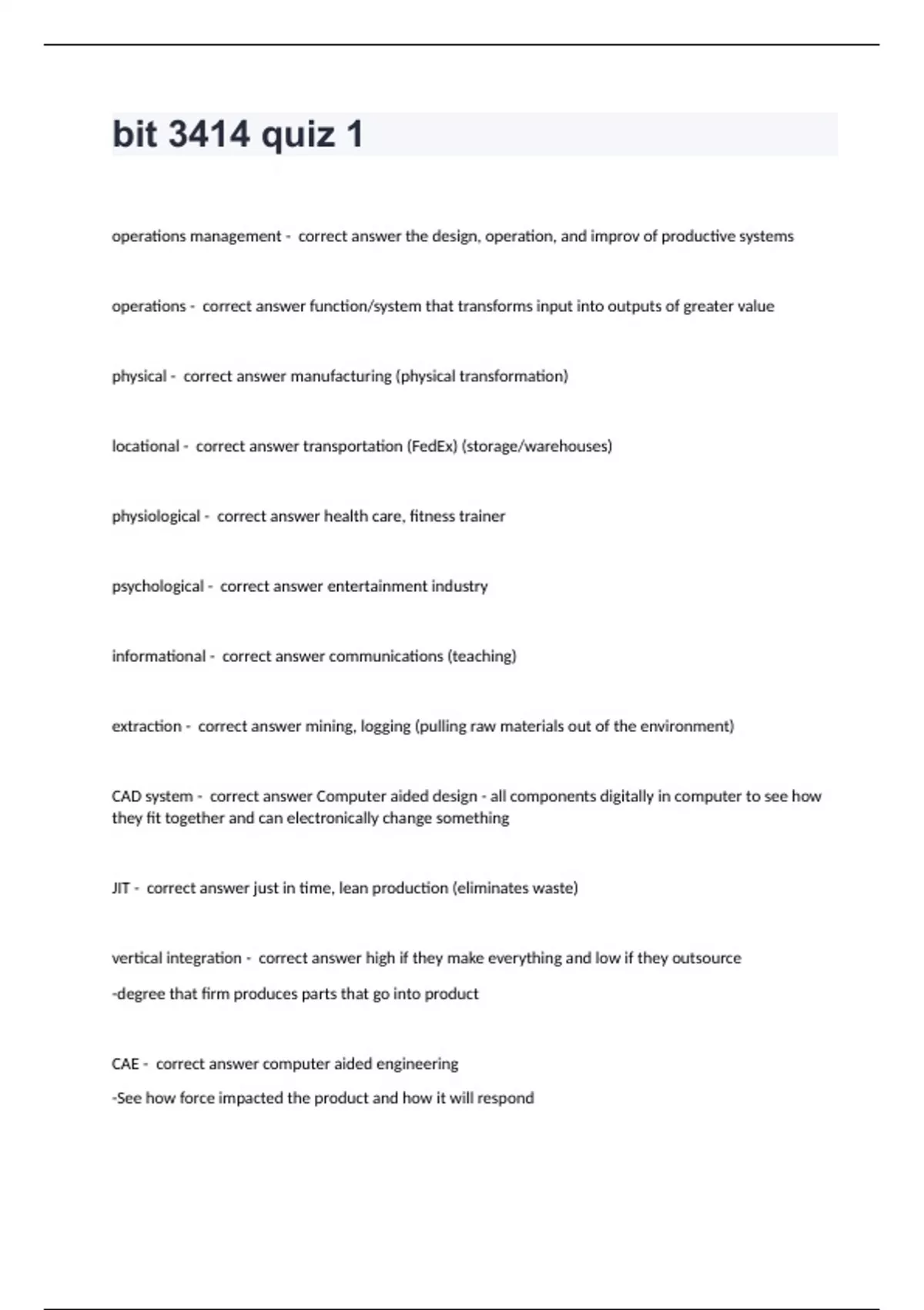 bit 3414 quiz 1 questions and answers already solv
