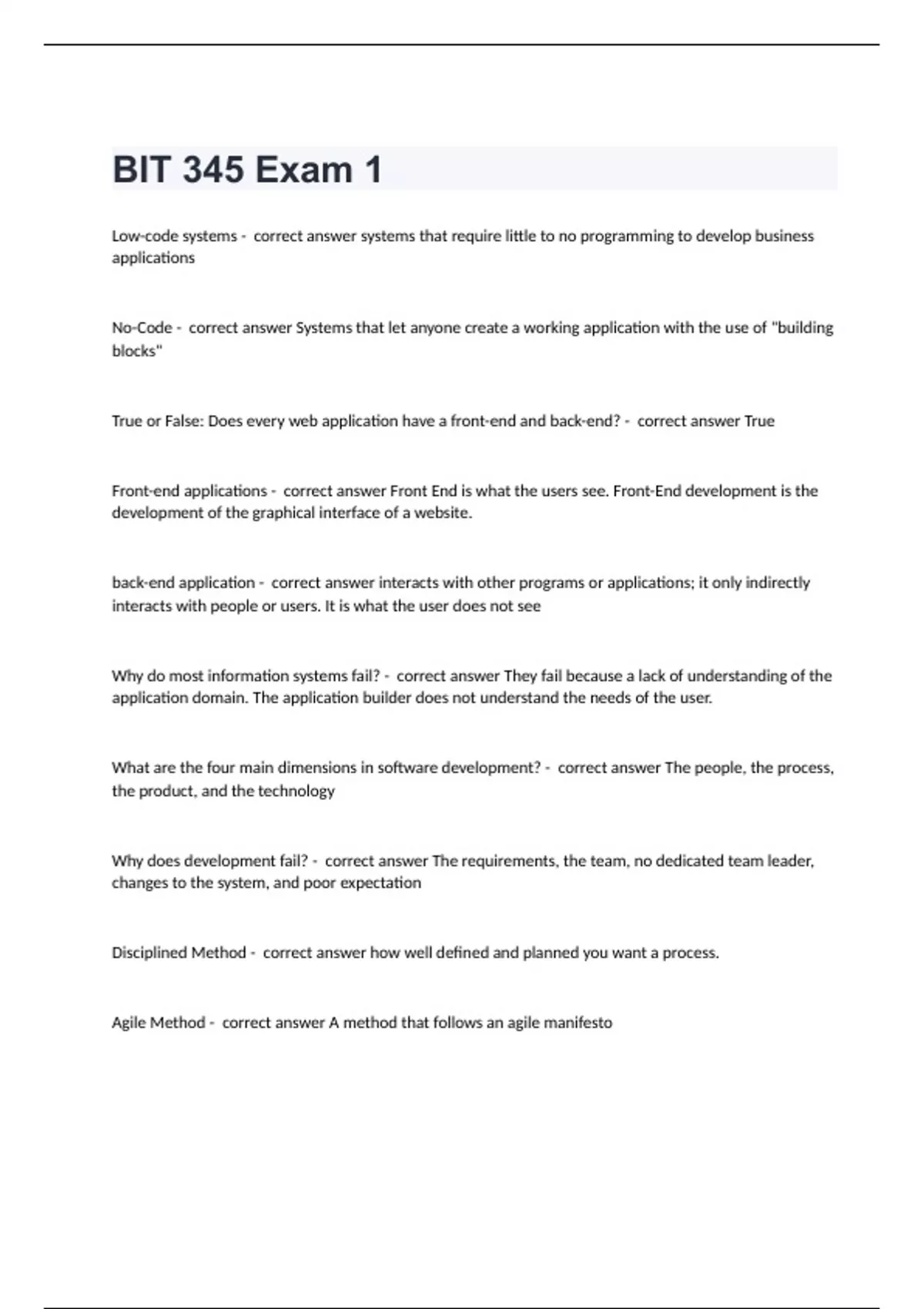 BIT 345 Exam 1 questions and answers verified 2024