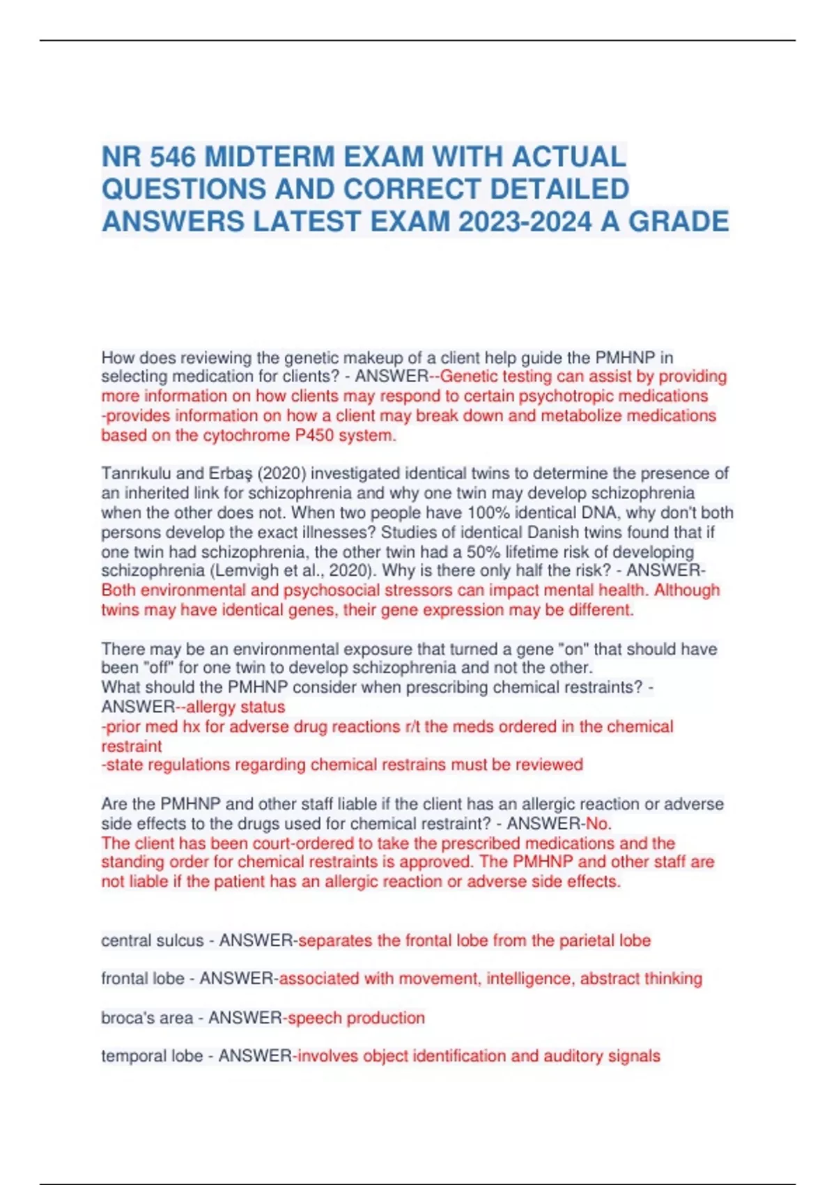 NR 546 MIDTERM EXAM WITH ACTUAL