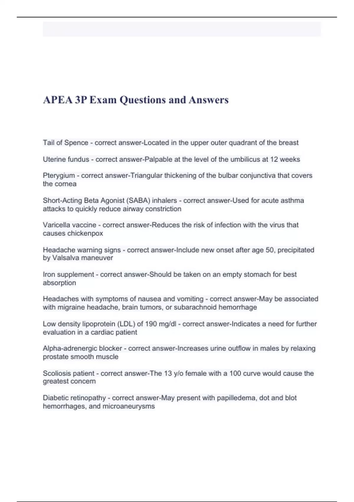 APEA 3P Exam Questions and Answers