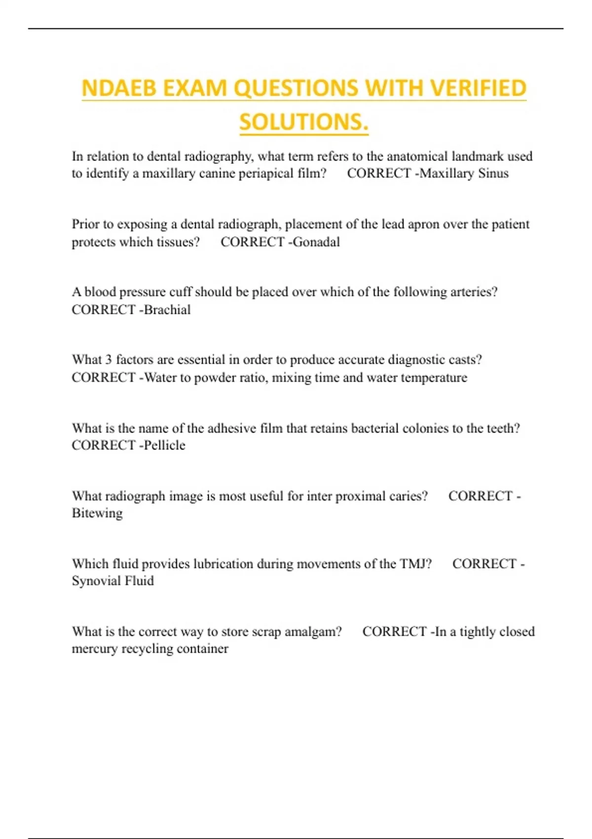 NDAEB EXAM QUESTIONS WITH VERIFIED SOLUTIONS RATED A.