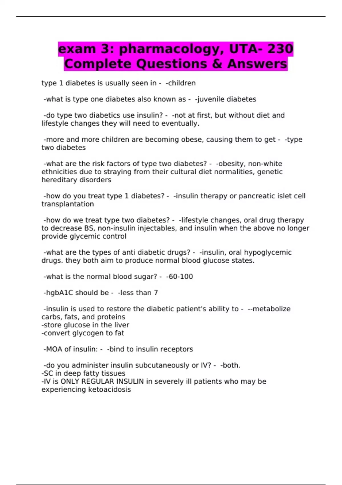 exam 3: pharmacology, UTA- 230 Complete Questions & Answers