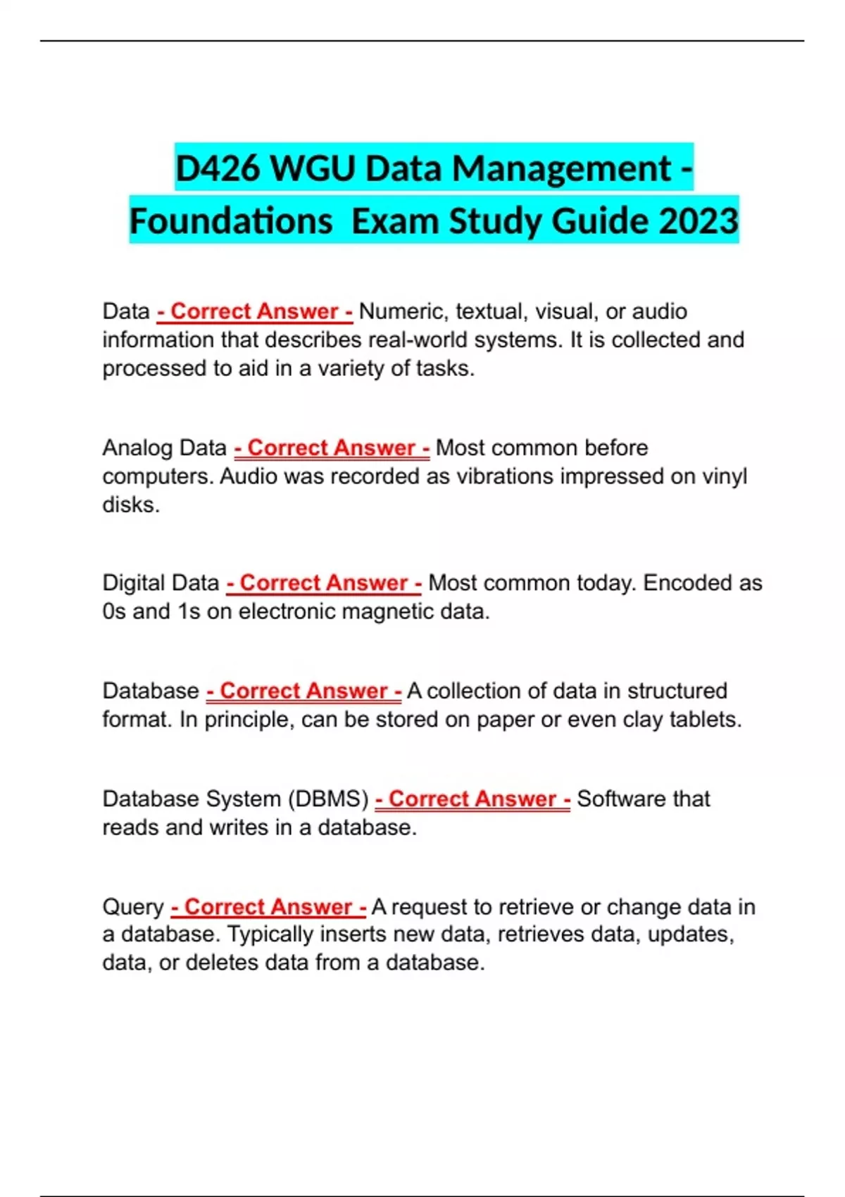 D426 WGU Data Management - Foundations Exam Study Guide 2023