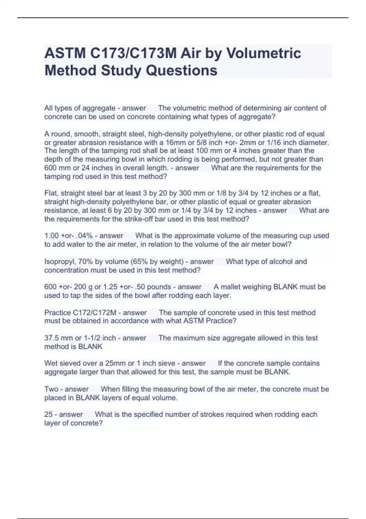 Exam of 2 pages for the course Air Method at Air Method (ASTM C171)
