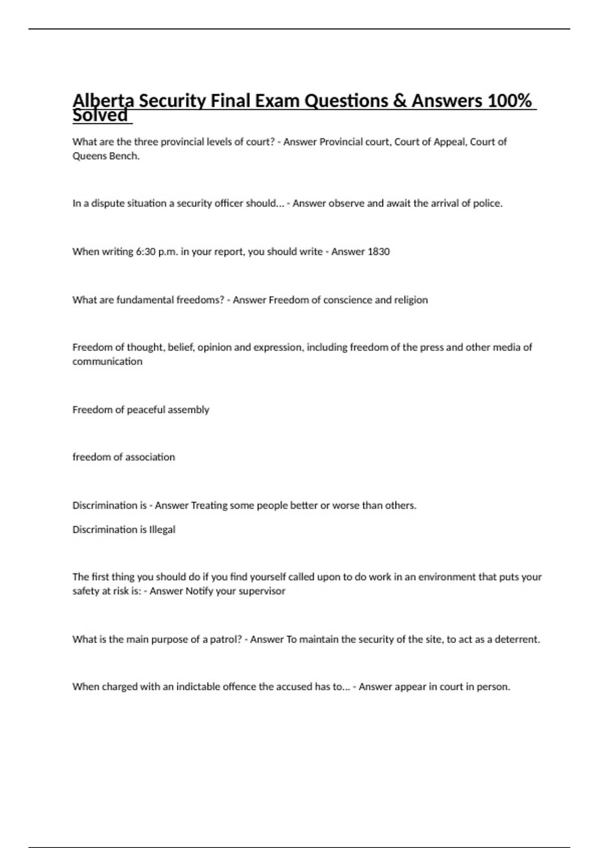 Alberta Security Final Exam Questions & Answers 100% Solved