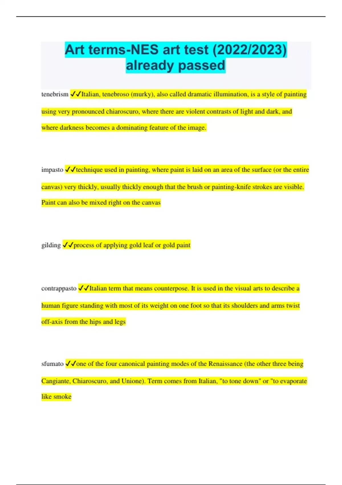 Art terms-NES art test (2023/2024) already passed