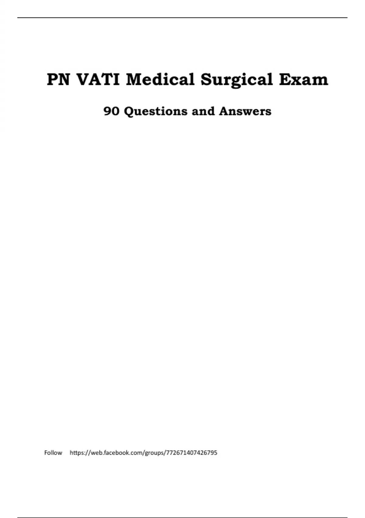 PN VATI Medical Surgical ExamA nurse is caring for a client who just had an endoscopic procedure. Which of the following is the monitoring priority for this client? A) Pain B) Nausea C) Gag reflex D) Level of consciousness --------- Correct Answer -------- C) Gag reflex A nurse is reinforcing discharge teaching for a client who has chronic pancreatitis. Which of the following statements by the nurse is appropriate? A)"You should decrease your caloric intake when abdominal pain is present." B) "You should increase your daily protein intake." C) "You should increase fat intake when experiencing loose stools." D) "You should limit alcohol intake to 2-2 drinks per week." --------- Correct Answer -------- B) "You should increase your daily protein intake." A nurse collects data on a client who returned to the unit four hr ago following a partial colectomy. Which of the following conditions should the nurse attend to first? A) Change the moderately saturated dressing.