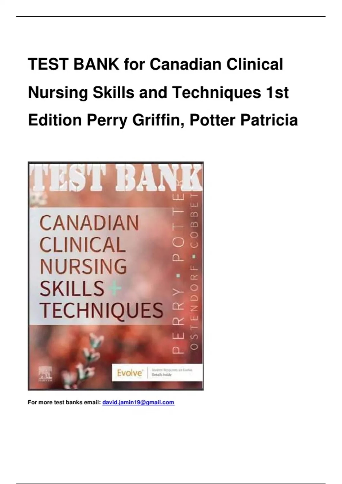 ,Test Bank For Canadian Clinical Nursing Skills and Techniques 1st Edition by Perry, Patricia