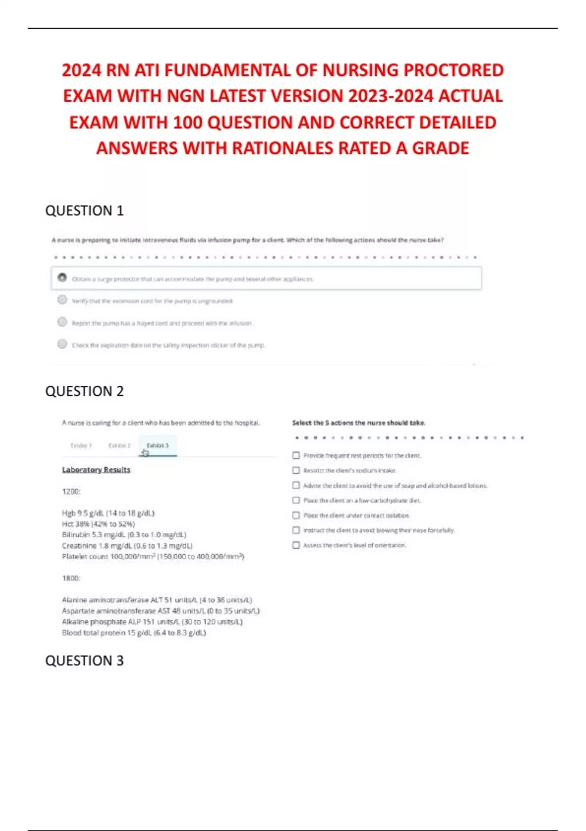 2024 RN ATI FUNDAMENTAL OF NURSING PROCTORED EXAM WITH NGN LATEST VERSION ACTUAL EXAM WITH 100 QUESTION AND CORRECT DETAILED ANSWERS WITH RATIONALES RATED A GRADE