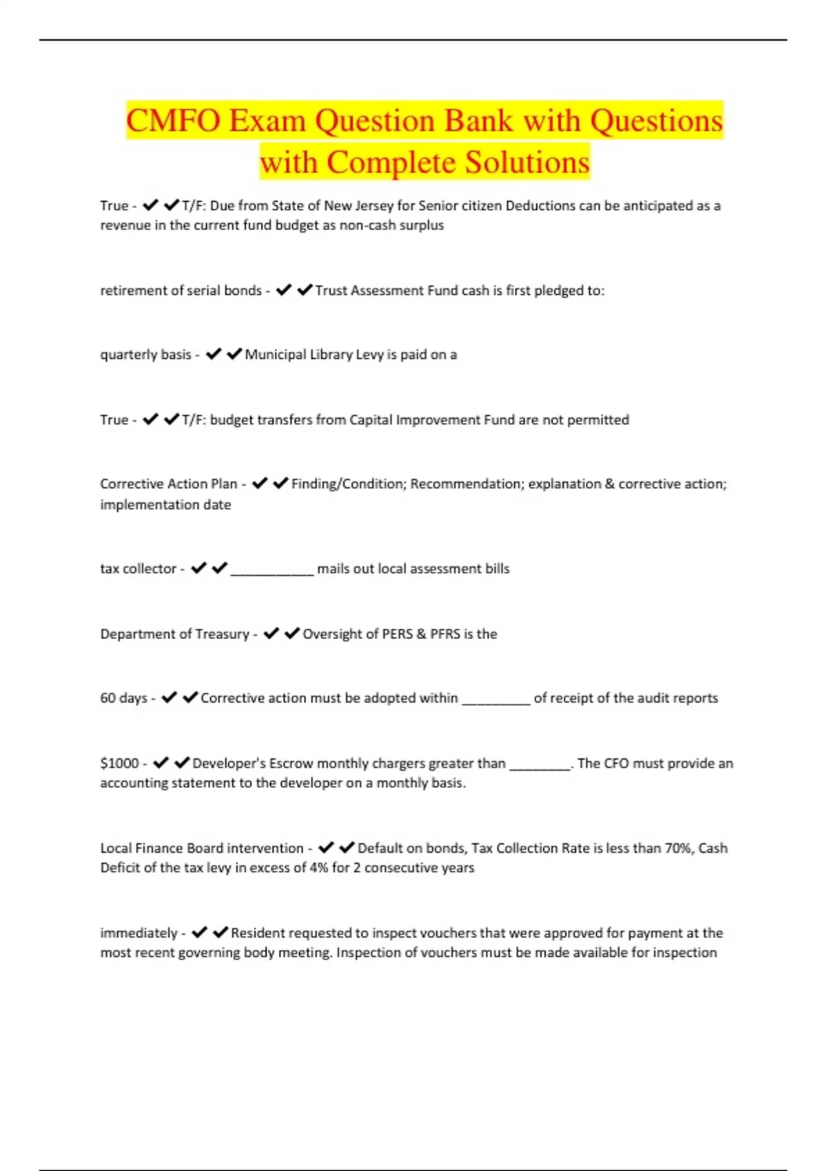 CMFO Exam Question Bank with Questions with Complete Solutions