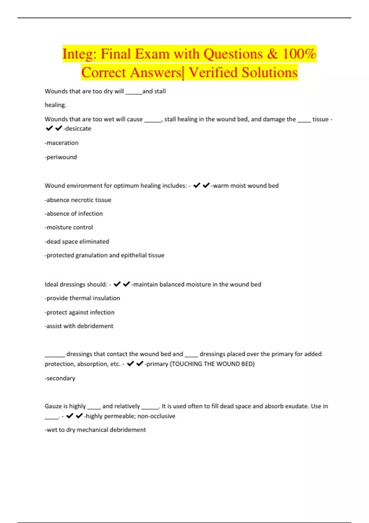 Integ: Final Exam with Questions & 100% Correct Answers| Verified Solutions