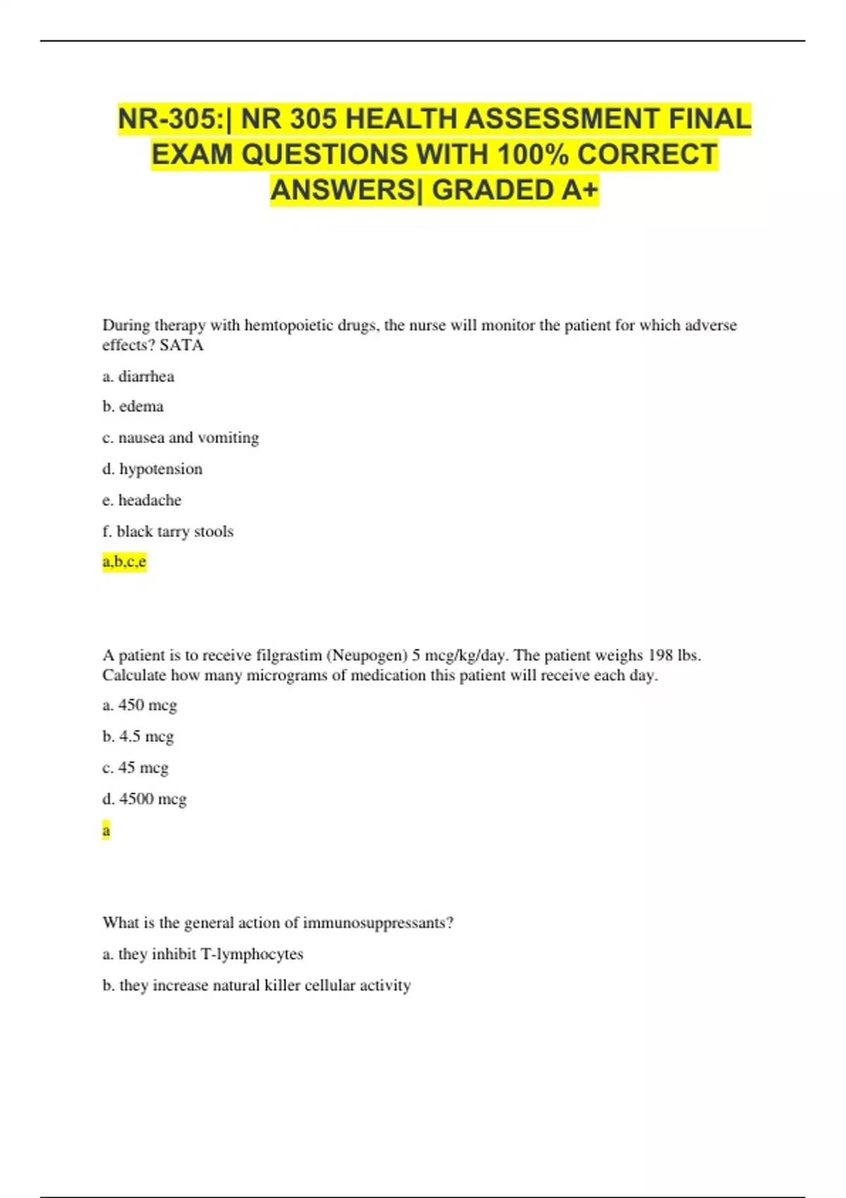 nr 305 nr 305 health assessment exam test