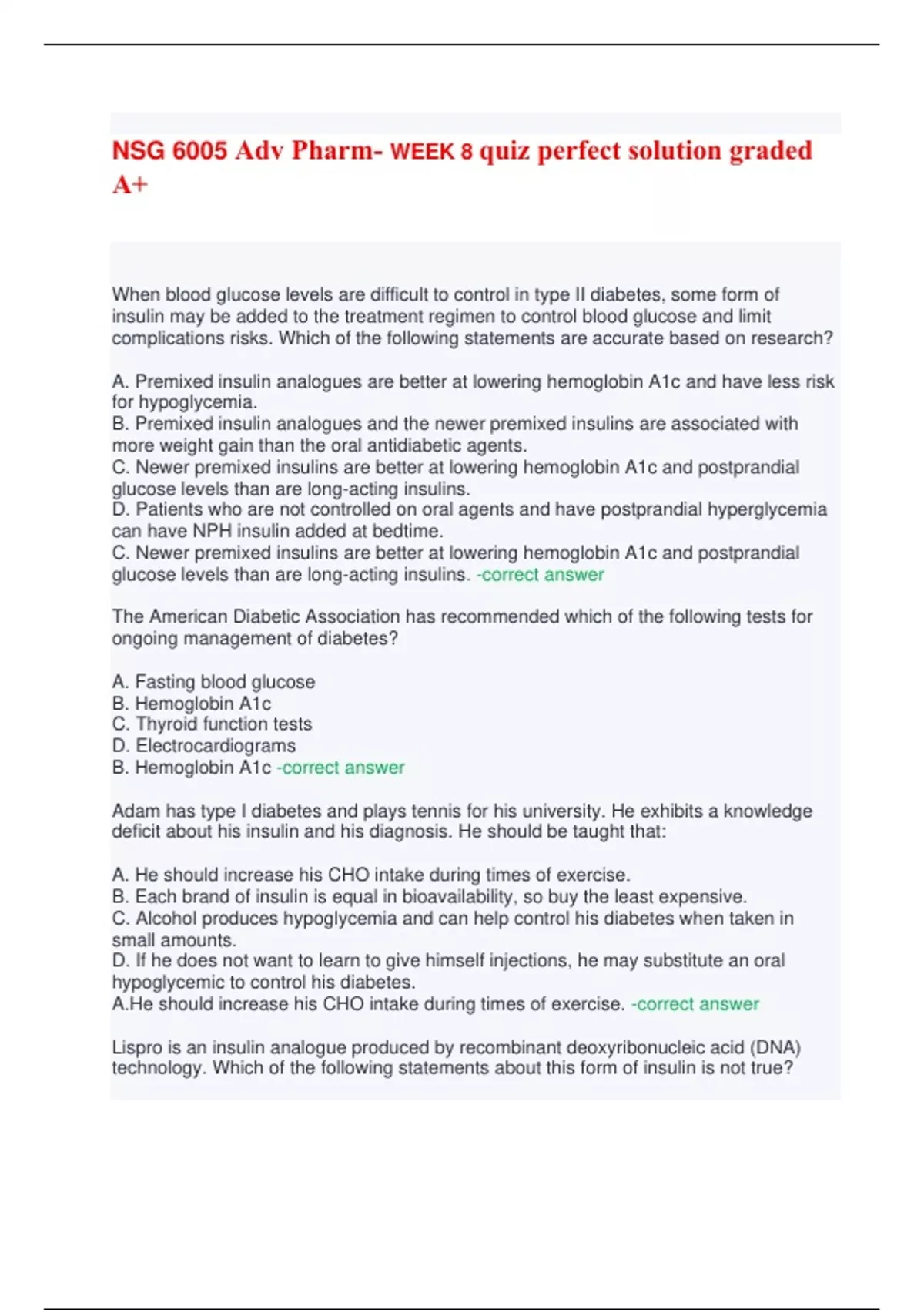 NSG 6005 Adv Pharm -week 8 quiz perfect solution graded A+