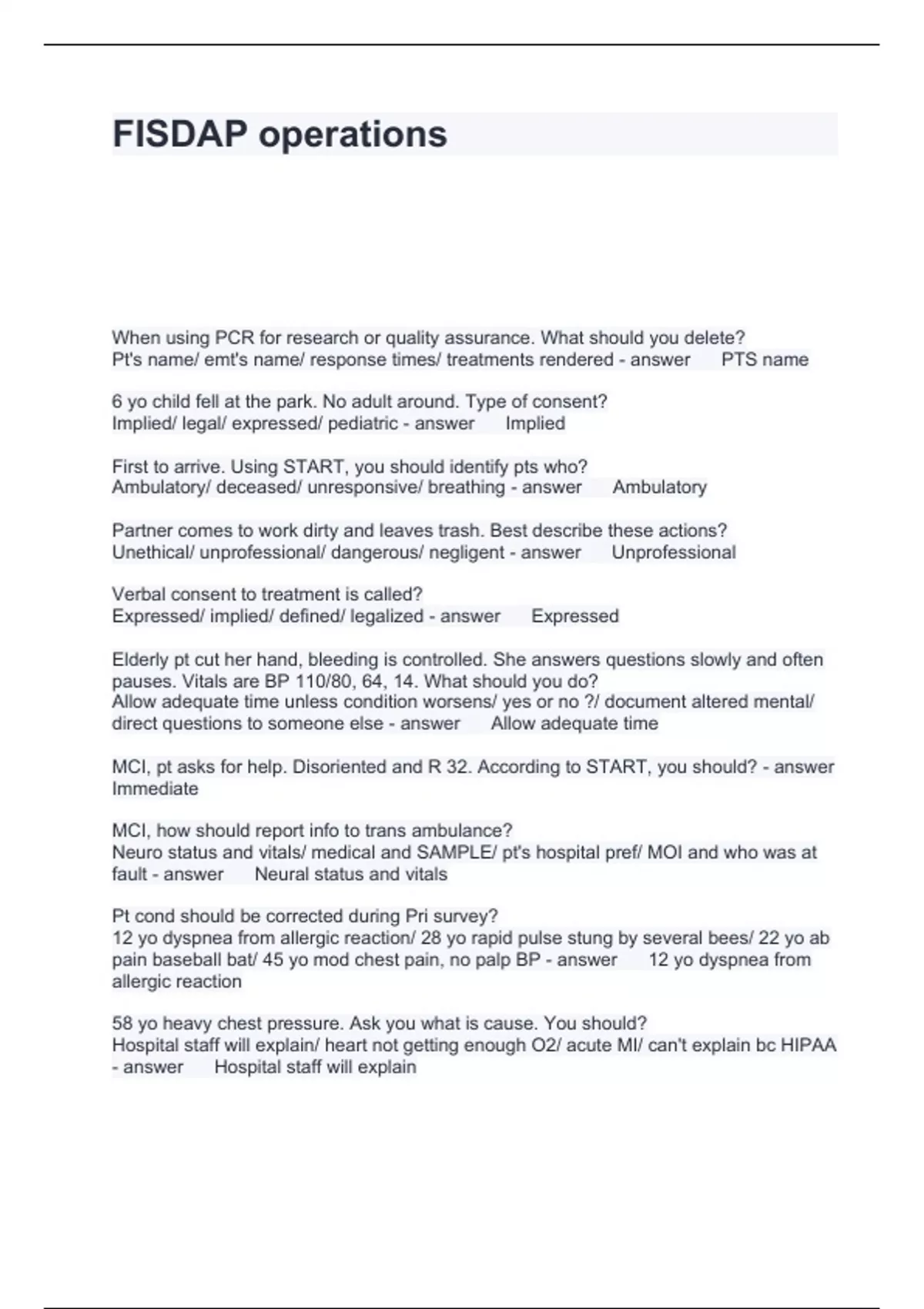 FISDAP operations Questions with correct Answers 2024