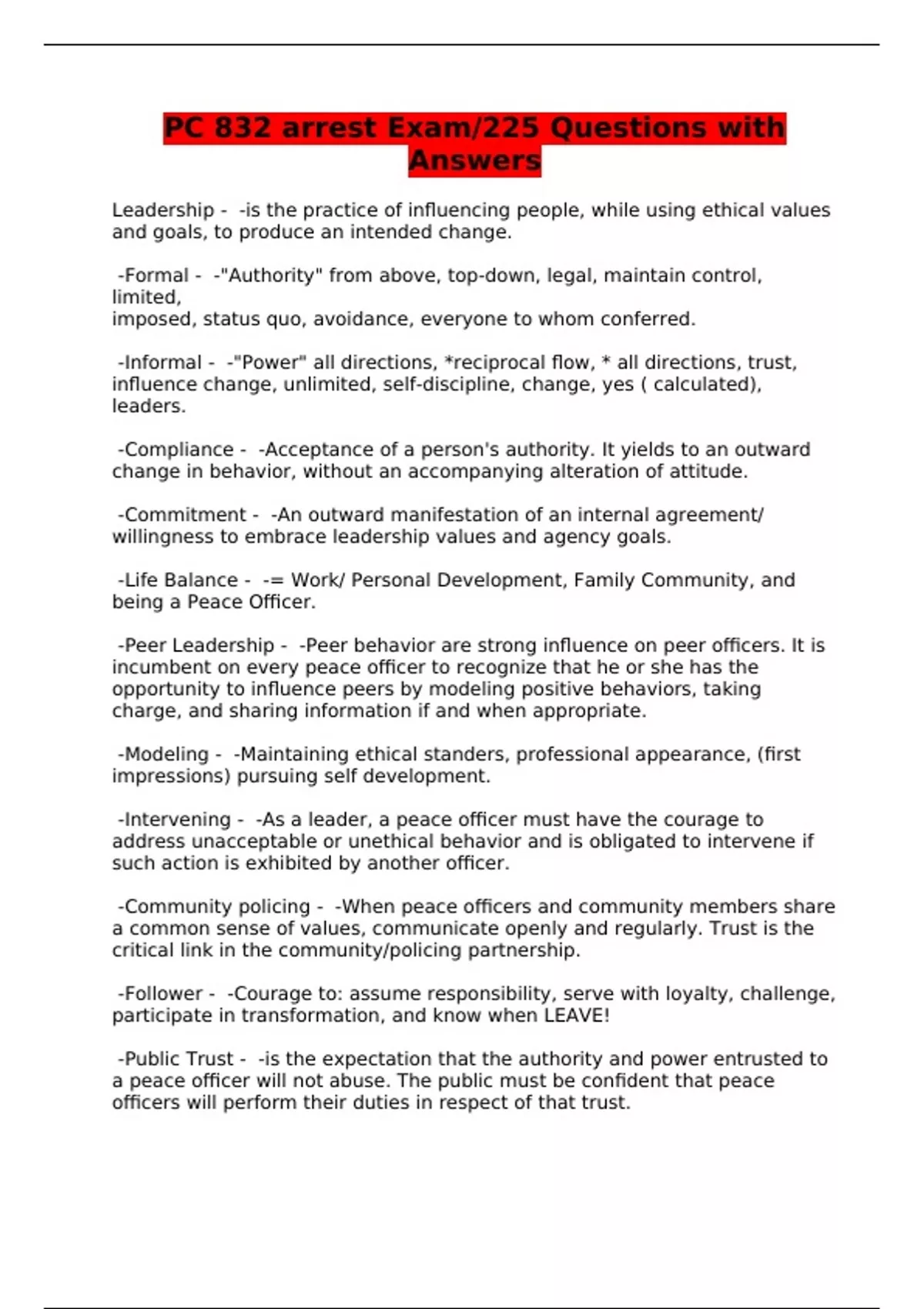 PC 832 arrest Exam/225 Questions with Answers