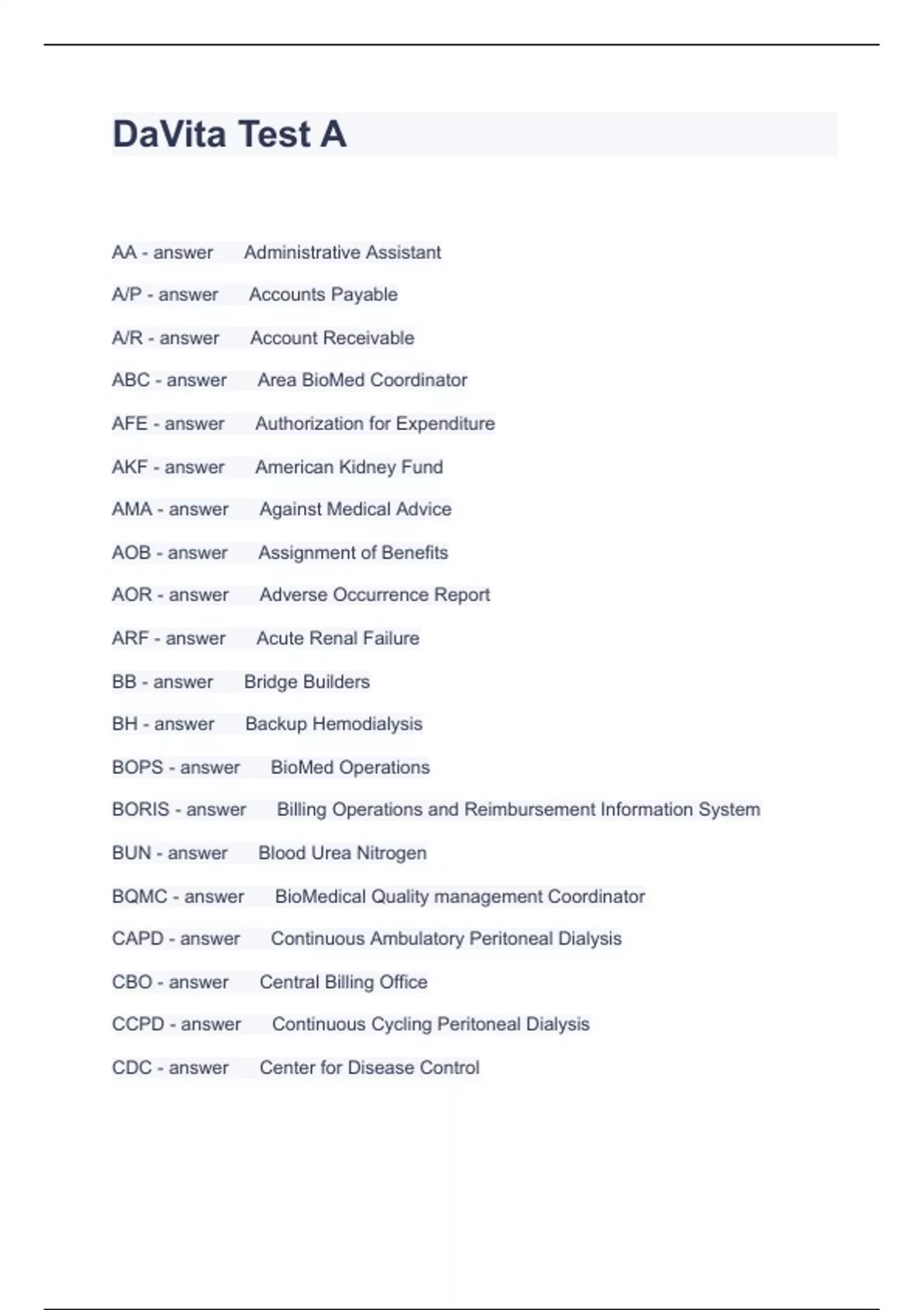 Exam of 5 pages for the course Davita at Davita (DaVita Test A)
