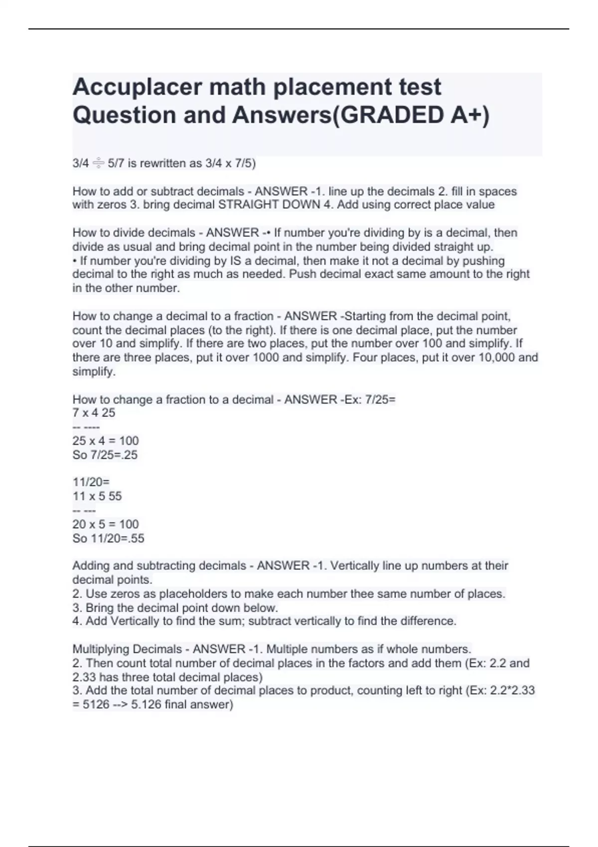 How to change a fraction to a decimal - ANSWER -Ex: 7/25=