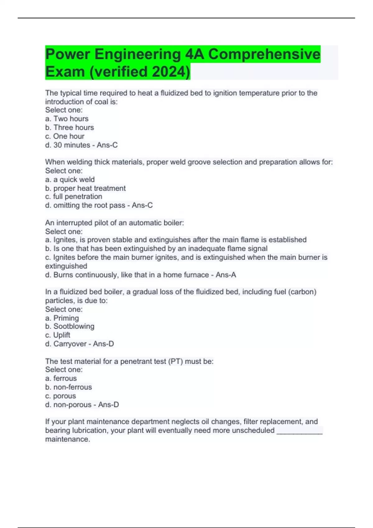 power engineering 4a comprehensive exam verified
