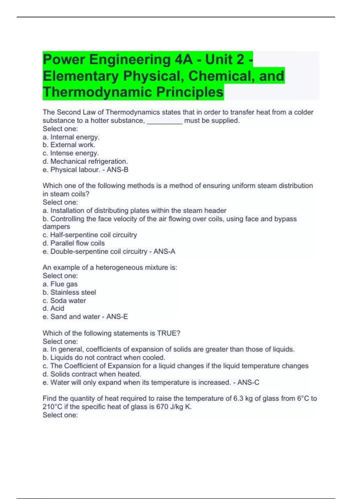 Power Engineering 4A - Unit 2 - Elementary Physical, Chemical, and Thermodynamic Principles