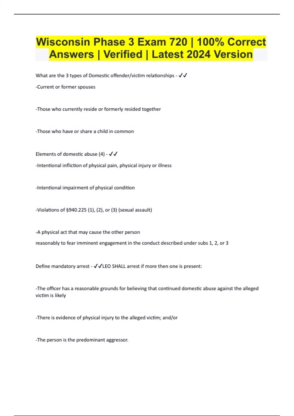 Wisconsin Phase 3 Exam 720 | 100% Correct Answers | Verified | Latest 2024 Version