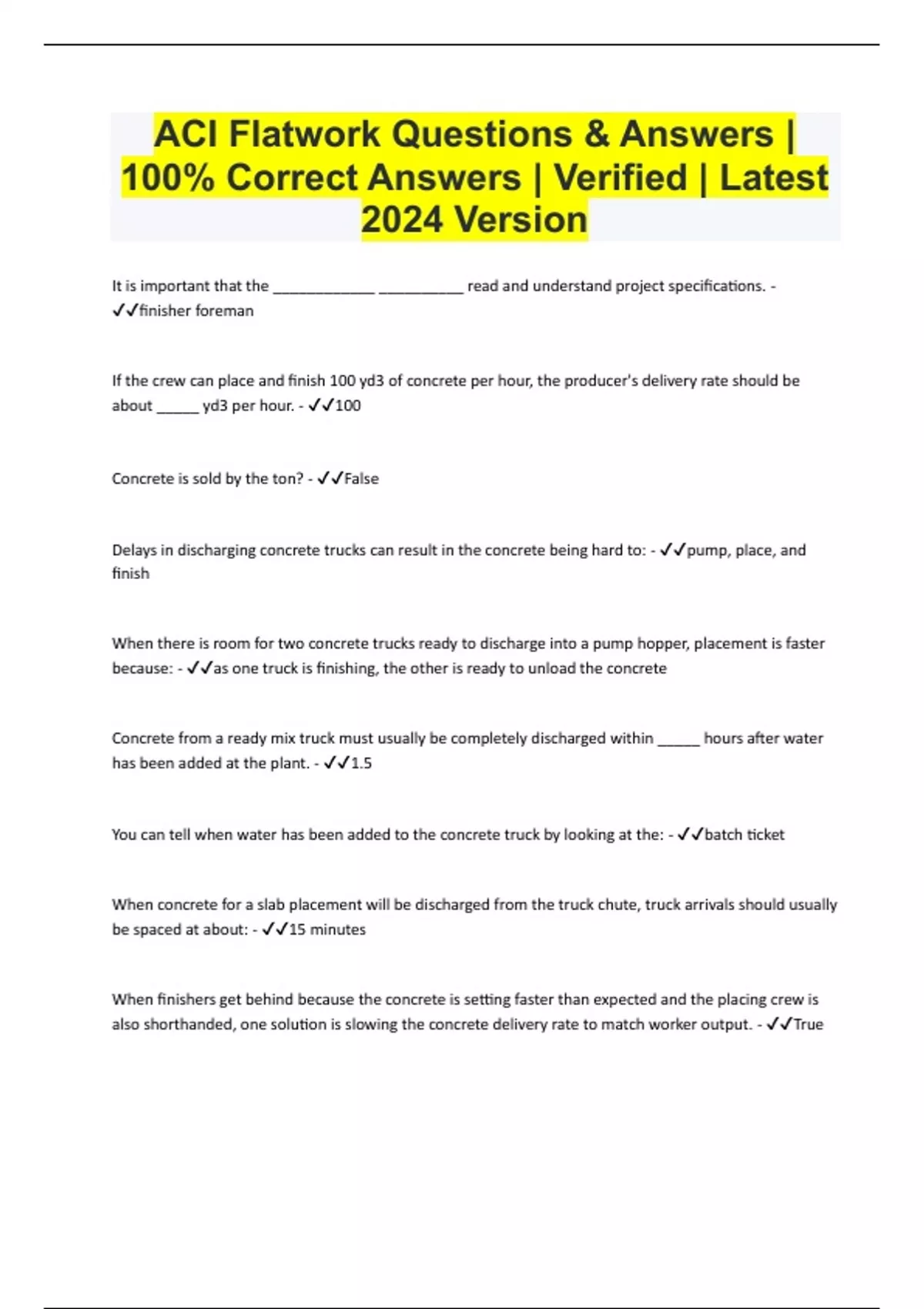 ACI Flatwork Questions & Answers | 100% Correct Answers | Verified | Latest 2024 Version