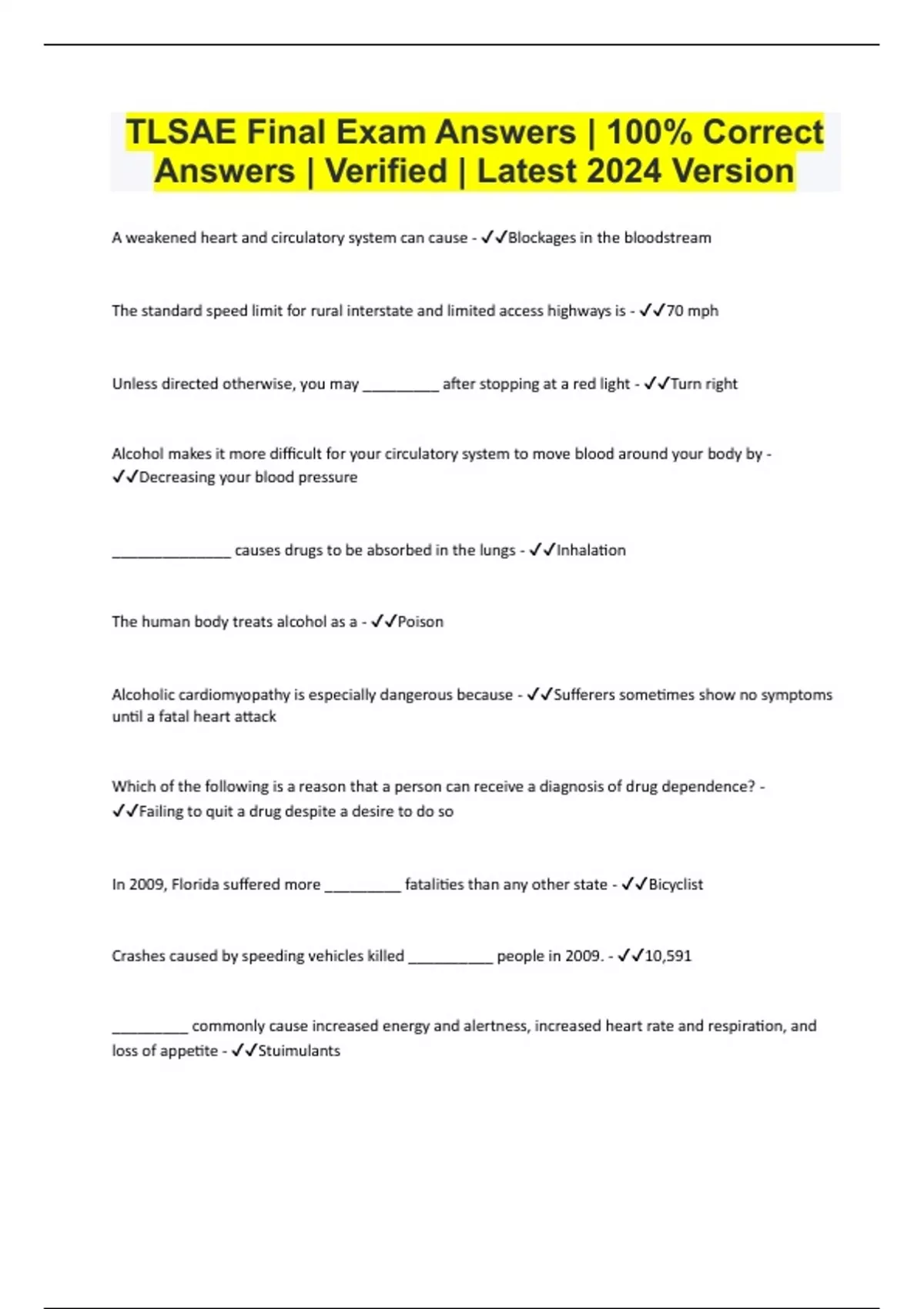 TLSAE Final Exam Answers | 100% Correct Answers | Verified | Latest 2024 Version