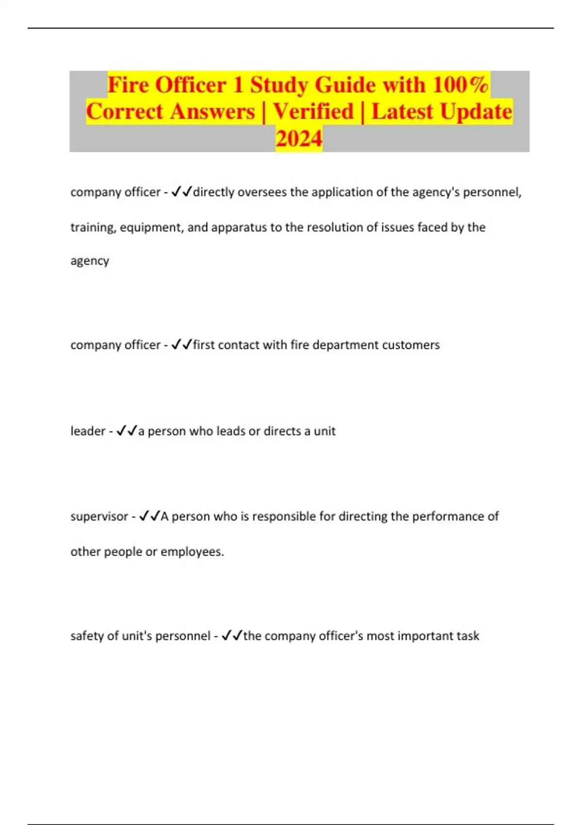 Fire Officer 1 Study Guide with 100% Correct Answers | Verified | Latest Update 2024